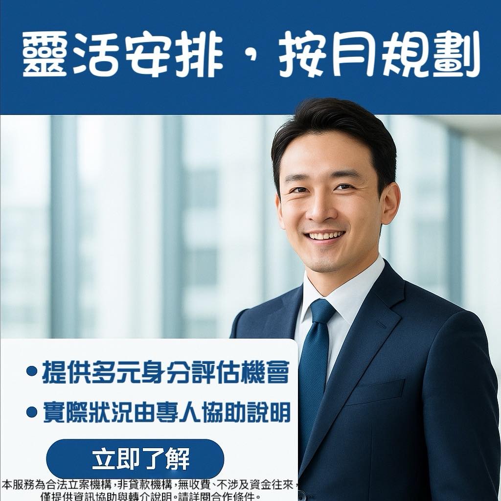 專案特色:免抵押品,有正常工作收入即可,有信用瑕疵皆可申辦。